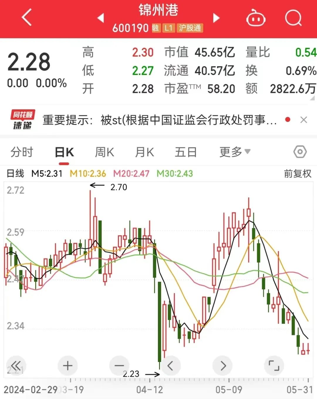 锦州港股票概况
