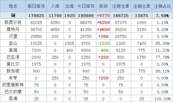 铜库存数据的最新动态