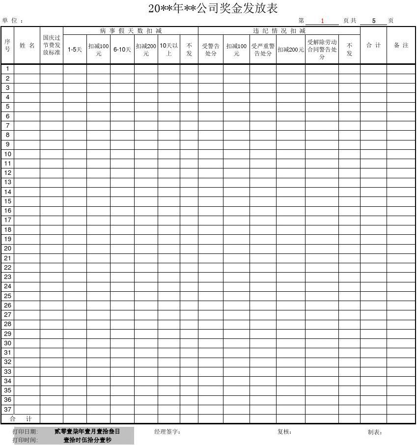 奖金发放表的诞生